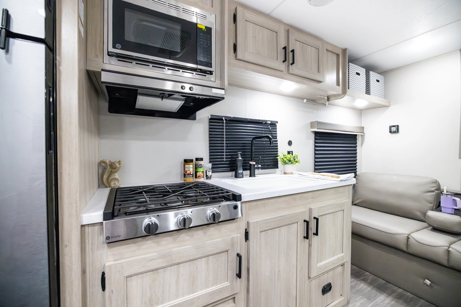 The 26BH Aurora Light TT combines family-friendly sleeping with versatile living space. Bunk beds and a well-designed main area make it perfect for groups or kids, while lightweight construction ensures easy towing. Enjoy hassle-free camping, outdoor meals, and nights under the stars.