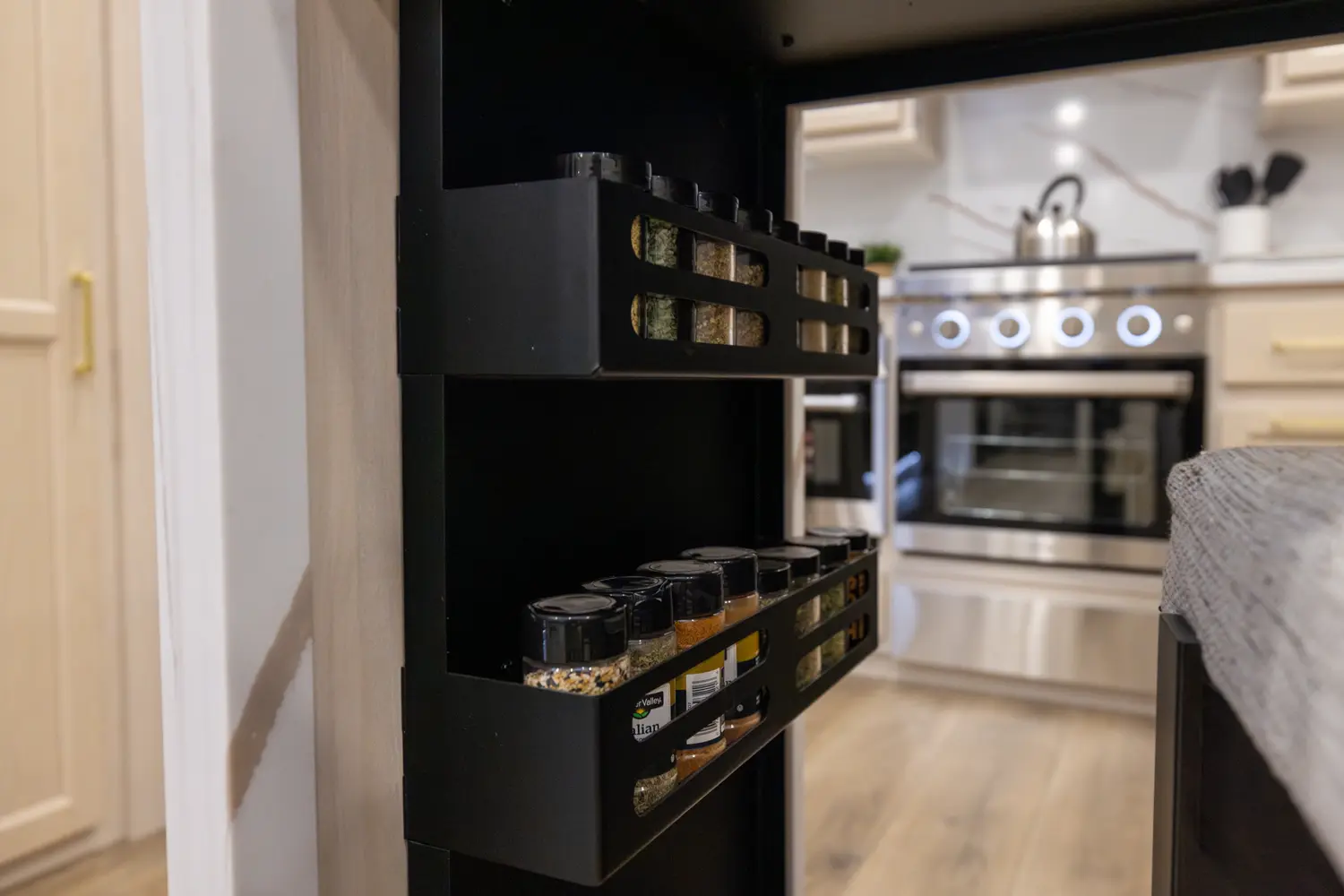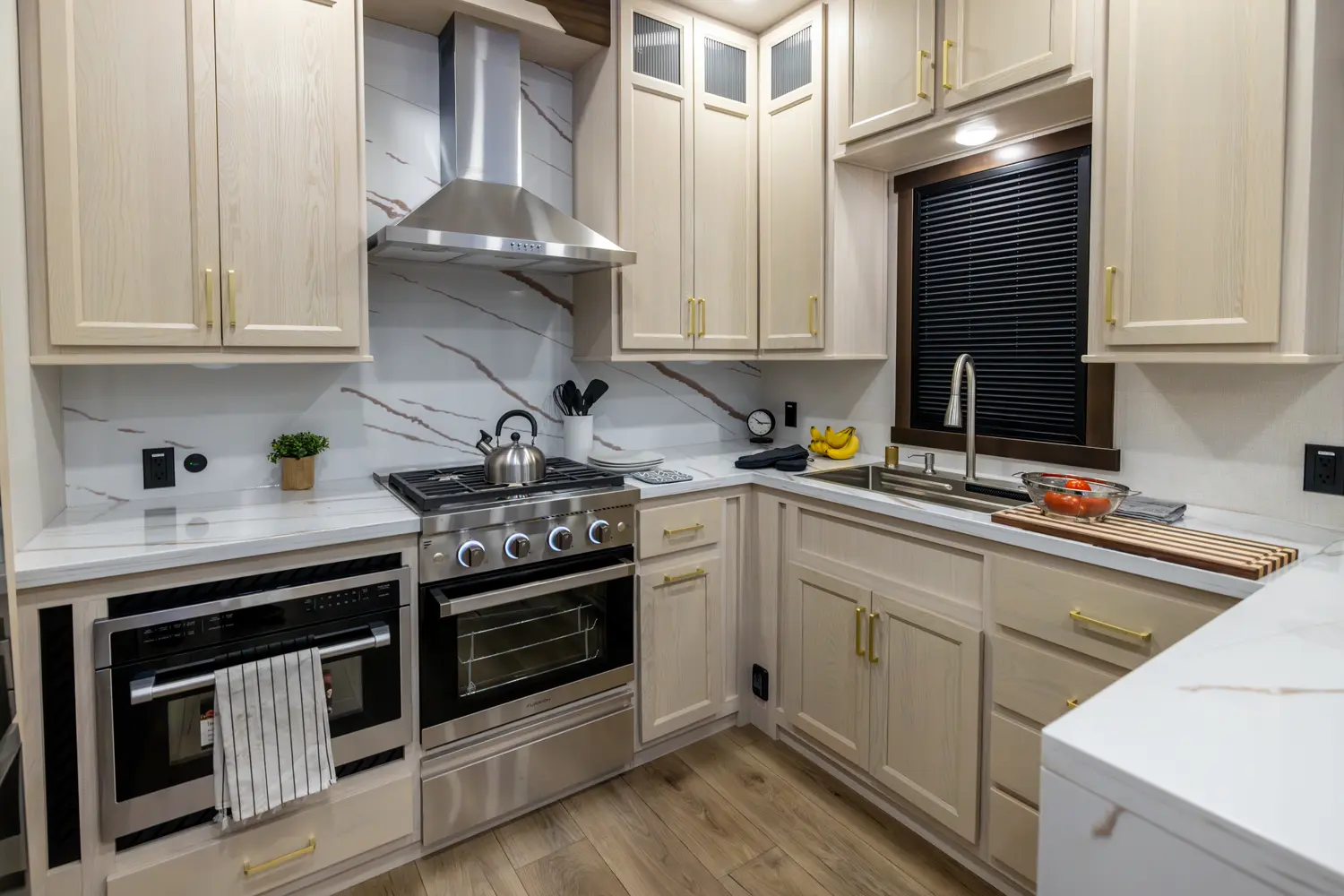 • Walnut / Two Tone Cabinetry with Hidden Hinges