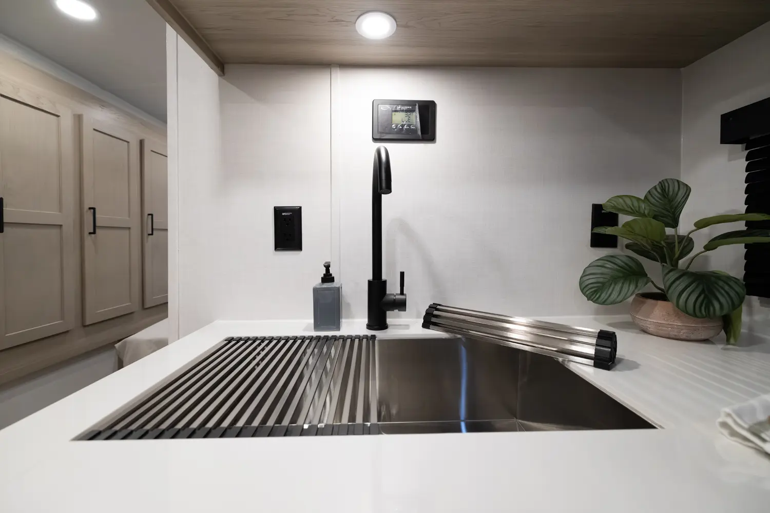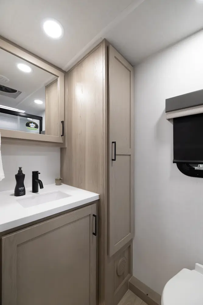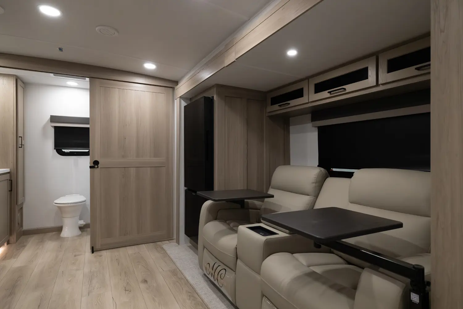 This unit is unique with its big 36" sliding doors leading to the bathroom and bedroom. These doors make moving around for a broad shouldered person easier and comfortable. The entertainement center is loaded with 32" tv, a residential soundbar and a fireplace space heater. Across from this lovely entertainment center is a 72" theatre seating which is perfect for reclining and watching a good movie.