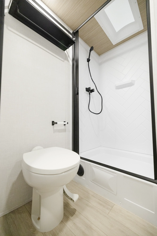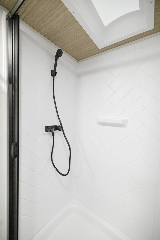• Spacious Shower with Skylight for Added Height