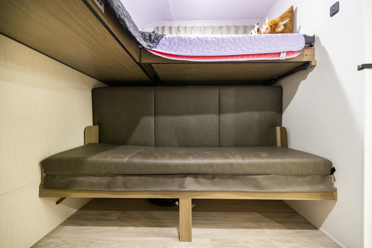 The 36VBDS is a unique, versatile bunkhouse that offers ample sleeping options so you can bring everyone camping! The front bedroom offers both the Versa-Queen and Versa-bunks, while the rear bedroom provides a queen bed, dresser, and closet. The living area features the fantastic Versa-Lounge with panoramic windows for great campsite views. Do not forget about the Stow N Go Storage conveniently below the Versa-Lounge.